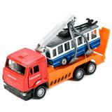 В Эвакуатор KAMAZ с троллейбусом - это то, чего не хватает в коллекции юного автолюбителя.Кабина игрушки окрашена в красный, а платформа в оранжевый цвет. На модели установлен инерционный механизм и подвижный элемент для погрузки машин. В набор входит троллейбус бело-синего цвета, изготовленный из прочного пластика. Игра с набором поможет развить воображение, логику и мышление ребенка. Рекомендовано детям от 3-х лет.