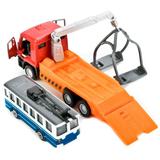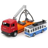 НАБОР "ТЕХНОПАРК" МАШИНА МЕТАЛЛ. ИНЕРЦ. КАМАЗ. ЭВАКУАТОР 12СМ + ТРОЛЛЕЙБУС 7,5СМ