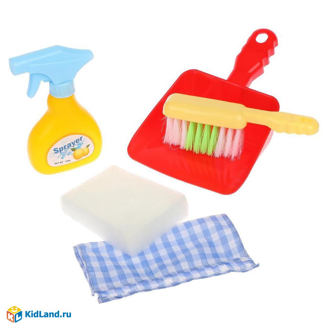 В комплекте: щётка, совок, губка, кусочек ткани и пульверизатор (муляж).