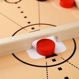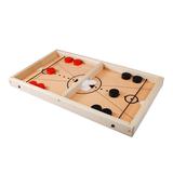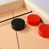 Настольная игра «Дабл слинг». Цель игры – отправить все фишки своего цвета на сторону противника с помощью резинки, метко попав в центральные ворота. Состав игры: игровое поле (43,3 х 25 см, высота – 33 мм), деревянные фишки – 10 шт. (диаметр – 29 мм., высота – 12 мм, цвета – чёрный, красный). Материалы: дерево, текстиль. Развивает мелкую моторику рук, реакцию, скорость движений, меткость, внимательность.