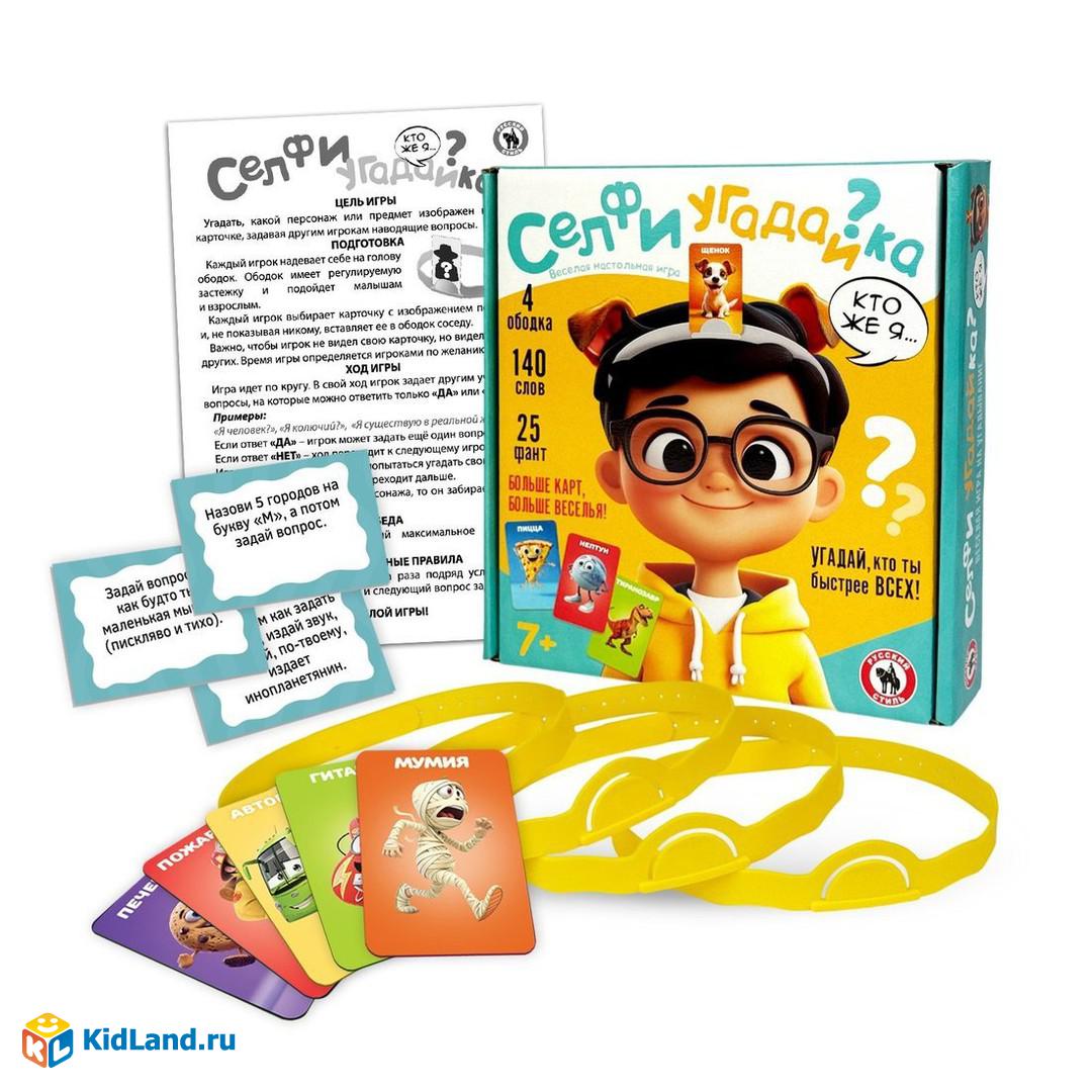 Игра "Селфи Угадайка" - веселая настольная игра, для идеального развлечения, семейных вечеров и встреч с друзьями. В комплекте 4 ободка из мягкого пластика, расширенный набор карточек: 140 забавных персонажей, дополнительные условия игры и карточки с фантами.