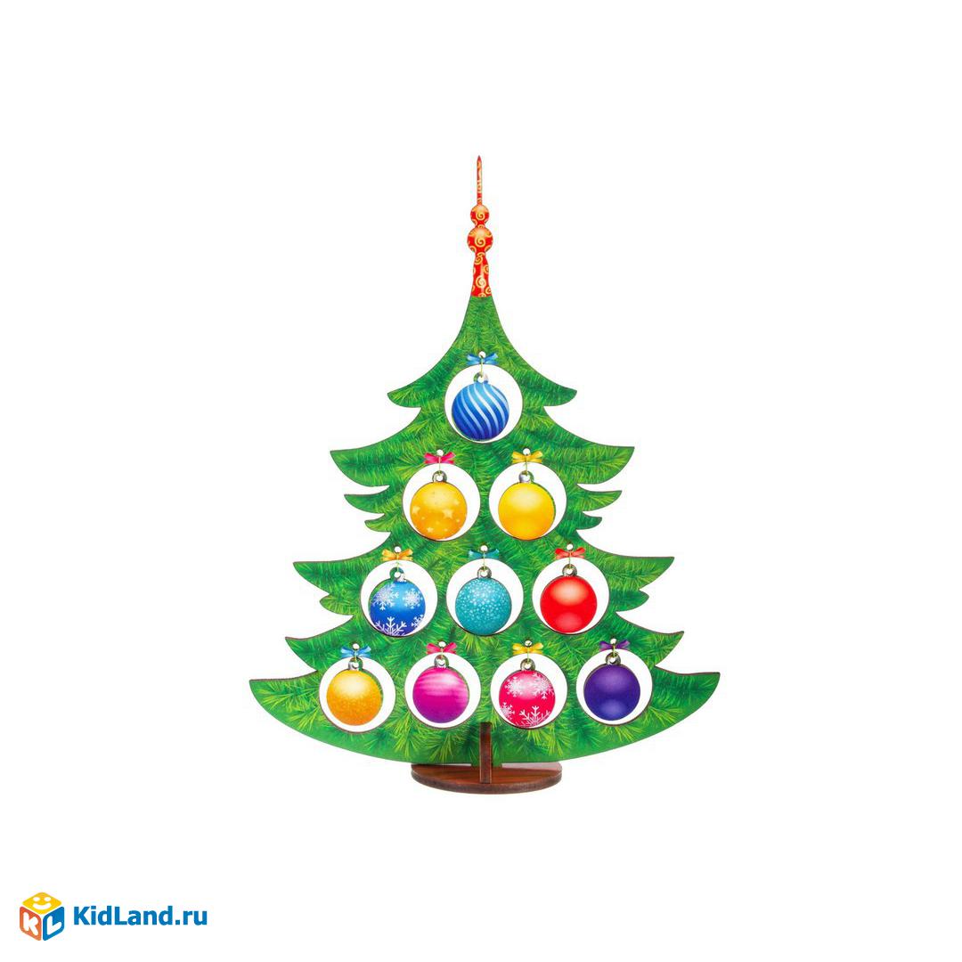 Новый год. Модель из дерева Woodlandtoys Ёлка сборная. Разноцветные шарики