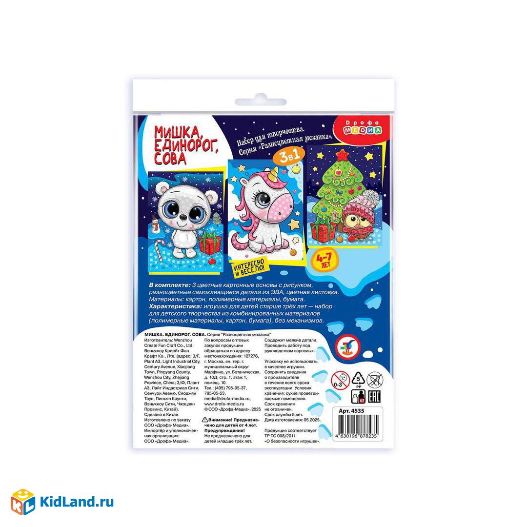 Новый год Разноцветная мозаика (3 в 1). Мишка. Единорог. Сова