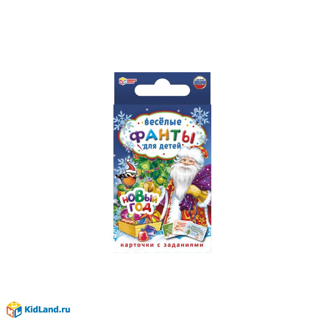 Новый год. Веселые фанты для детей. Коробка с европодвесом, 32 карточки. Умные игры