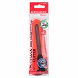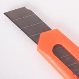 Инструмент прекрасно лежит в руке за счет специфической формы корпуса и рифленой поверхности. Его можно удобно зафиксировать, не беспокоясь о том, что нож соскользнет и отрежет лишнее или поранит кожу. Для того, чтобы лезвие не меняло свое положение, предусмотрен специальный фиксатор. С его помощью режущую часть можно выдвинуть настолько, насколько это необходимо. Лезвия подлежат замене, запасной комплект приобретается отдельно. Заменить режущую часть просто: достаточно снять верхнюю заглушку и вытащить затупившийся или поломанный элемент. Если кончик лезвия затупился, его можно отломить по специальной контрольной линии. Сделать это удастся даже не вынимая режущую поверхность из ножен, аккуратно надавив на край выдвинутого лезвия. Отличается повышенной прочностью, удобством в использовании и долговечностью. Широкое лезвие в 18 мм позволяет работать с довольно плотными материалами, например, картоном, пластиком или тонкой древесиной. Большие объемы ткани, бумаги, целлофана и других материалов тоже прекрасно поддаются воздействию канцелярского ножа BRAUBERG «Classic». Доступны инструменты в красном, желтом и зеленом цветовых решениях (поставляются без возможности выбора). Само изделие поставляется в упаковке с европодвесом.