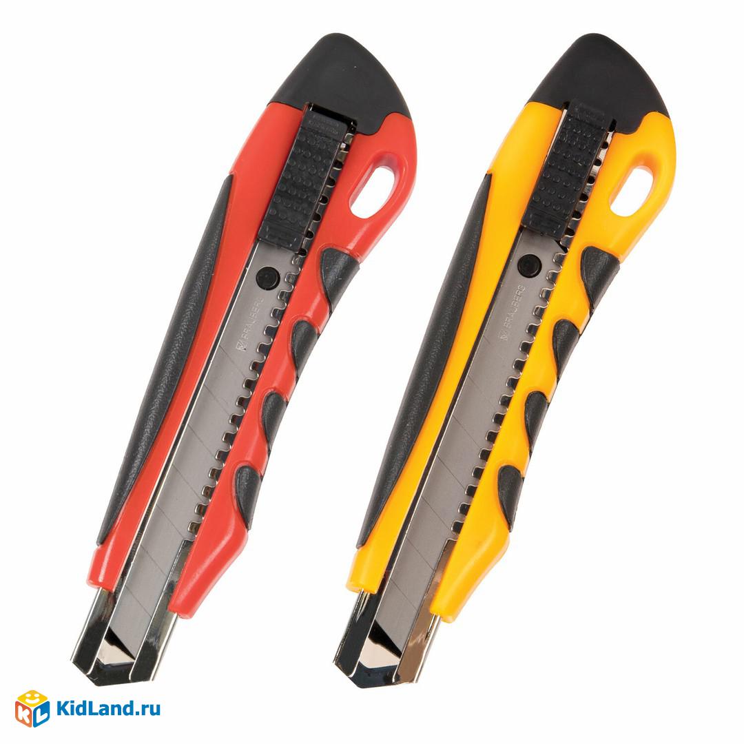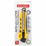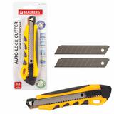 Нож канцелярский 18 мм BRAUBERG "Universal", 3 лезвия в комплекте, автофиксатор, резиновые вставки,