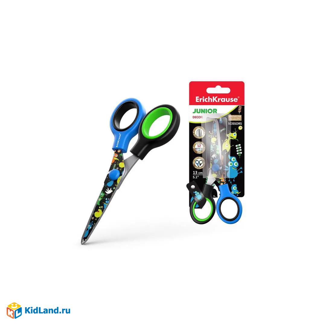 Ножницы ErichKrause® Junior Decor Funny Monsters с принтом на лезвиях, 13см (в блистере по 1 шт)