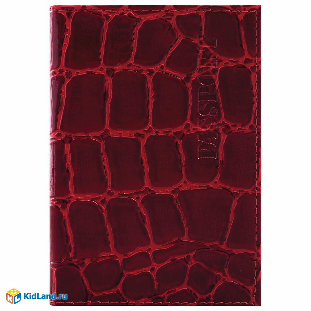 Обложка для паспорта натуральная кожа Croc, "PASSPORT", красная, BRAUBERG, 237180