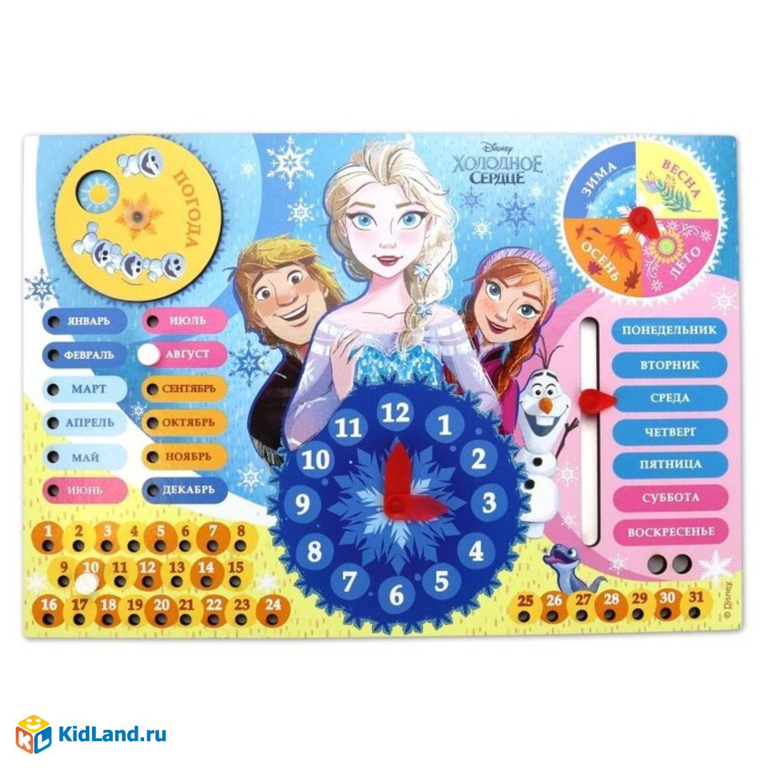 Обучающая доска-календарь «Холодное сердце» познакомит ребенка с сезонами и погодными явлениями, научит определять месяц, день недели и время. В комплект входит деревянный планшет с гладкой и безопасной поверхностью и 2 элемента для выбора позиций на планшете. Циферблат со стрелками и крупными цифрами поможет ребенку разобраться с часами и минутами. Ползунок выбора дня легко передвигается: с его помощью дети быстрее запомнят порядок дней недели, научатся различать будние и выходные дни. Бизиборд с героями любимого мультфильма поможет развить мелкую моторику, ассоциативное мышление, память и визуальное восприятие.