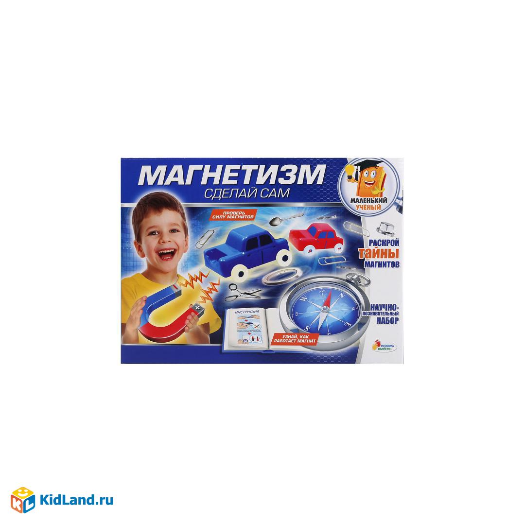 ОПЫТЫ "ИГРАЕМ ВМЕСТЕ": МАГНЕТИЗМ В РУСС. КОР. в кор.36шт Детский набор "Магнетизм" из серии "Маленький учёный" раскроет тайны магнита! В комплекте есть всё для экспериментов: 2 машинки, лабораторная лодочка голубого цвета, магнит в виде подковы, стержневой магнит, кольцевой магнит, капсула с магнитным песком, лист с наклейками и компас. Ребёнок узнает, как работает компас и проверит силу магнитов. Рекомендовано детям от 8 лет.