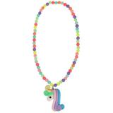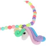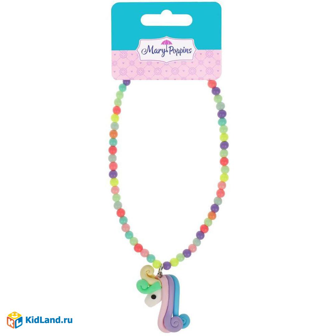 Ожерелье сделано из небольших круглых бусин разных красочных цветов и украшено подвеской в виде единорога. Этот стильный аксессуар будет прекрасно сочетаться с большинством нарядов юной леди.