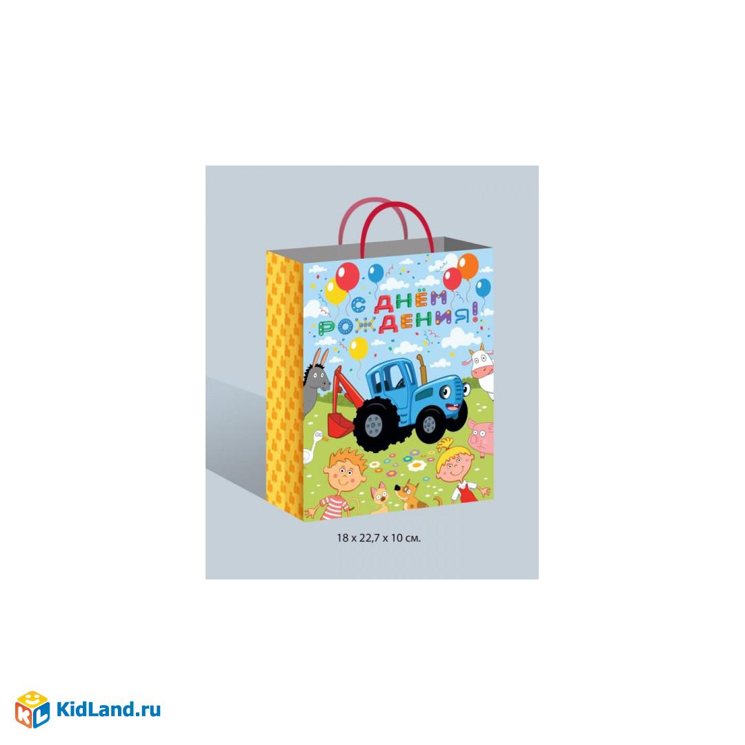 Пакет подарочный глянцевый СИНИЙ ТРАКТОР m, 18*22,7*10 см ЧУДО ПРАЗДНИК