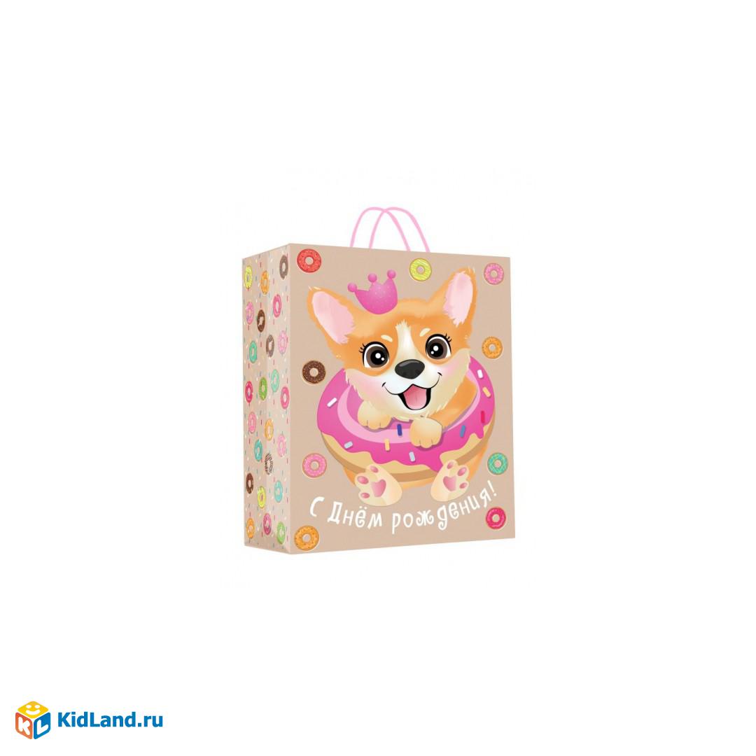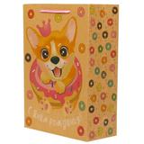 Праздничный подарочный пакет с изображением милого щенка породы корги станет ярким запоминающимся штрихом, изюминкой детского подарка, и принесёт ребёнку радость предвкушения. Ему будет интересно заглянуть в него, чтобы узнать, что же приготовили родные или друзья на день рождения или на любой другой праздник.