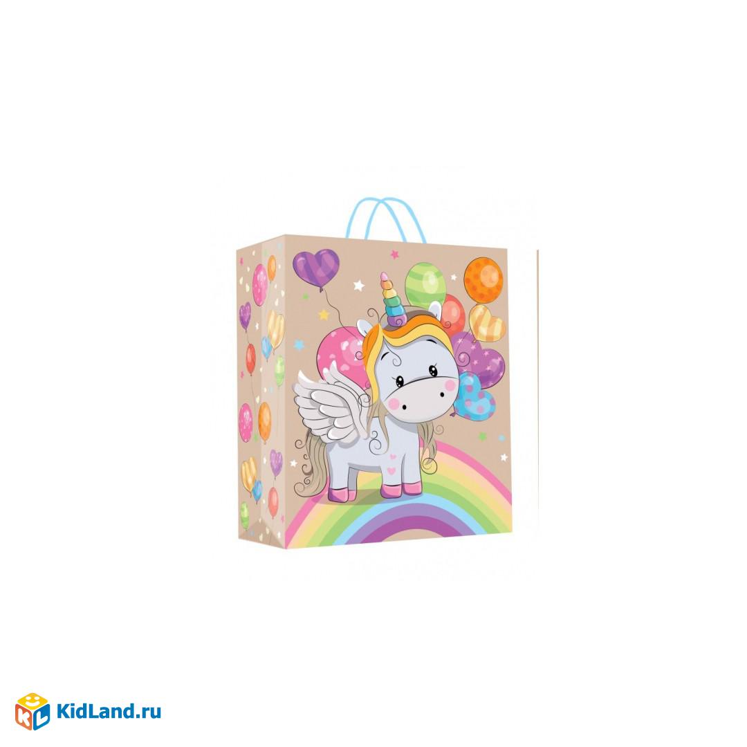 Праздничный подарочный пакет с изображением милого крылатого единорога станет ярким запоминающимся штрихом, изюминкой детского подарка, и принесёт ребёнку радость предвкушения. Ему будет интересно заглянуть в него, чтобы узнать, что же приготовили родные или друзья на день рождения или на любой другой праздник.