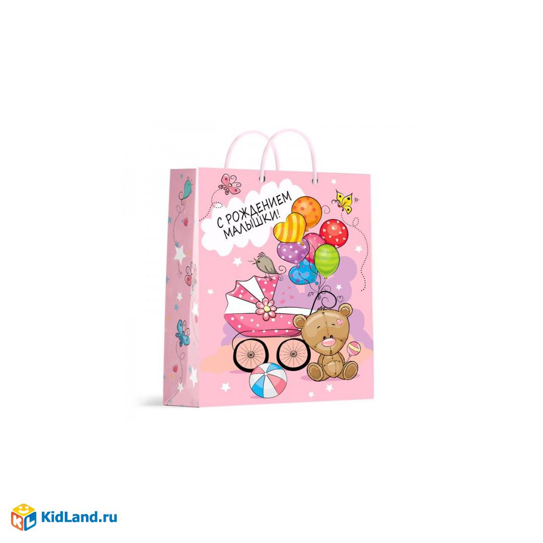 Пакет подарочный МАТОВЫЙ, с рождением малышки, размер м ЧУДО ПРАЗДНИК