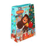 Пакет подарочный МАТОВЫЙ СОЮЗМУЛЬТФИЛЬМ xl,Чебурашка новогодни,140 гр/м2 ЧУДО ПРАЗДНИК