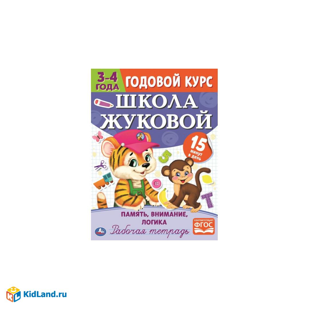 Рабочая тетрадь «Годовой курс, 3-4 года. Память, логика, внимание» из серии «Школа Жуковой» ТМ «УМка» станет отличным помощником для родителей в развитии малыша: