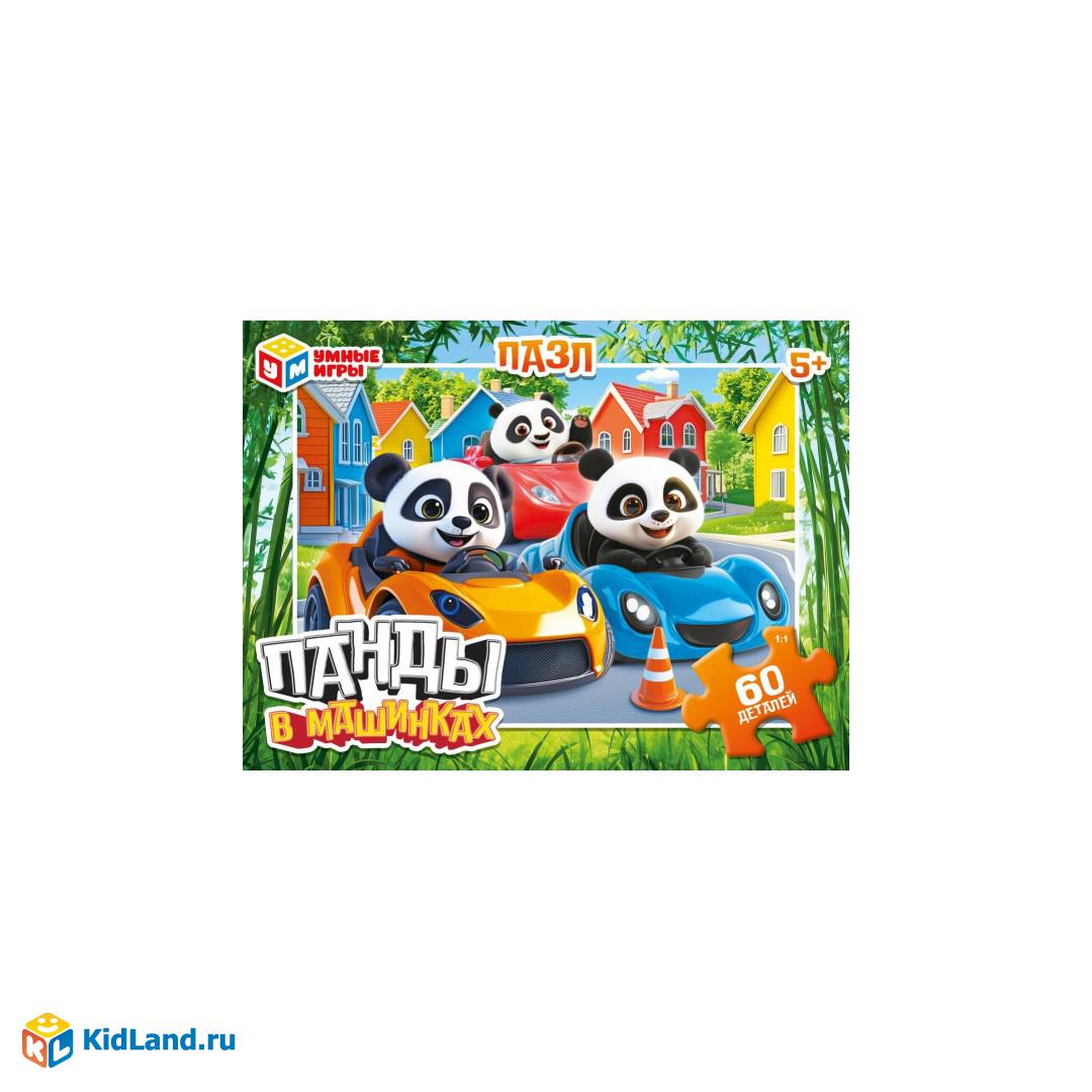 Панды в машинках. Пазлы в коробке 60 деталей. 190х141х35 мм. Умные игры