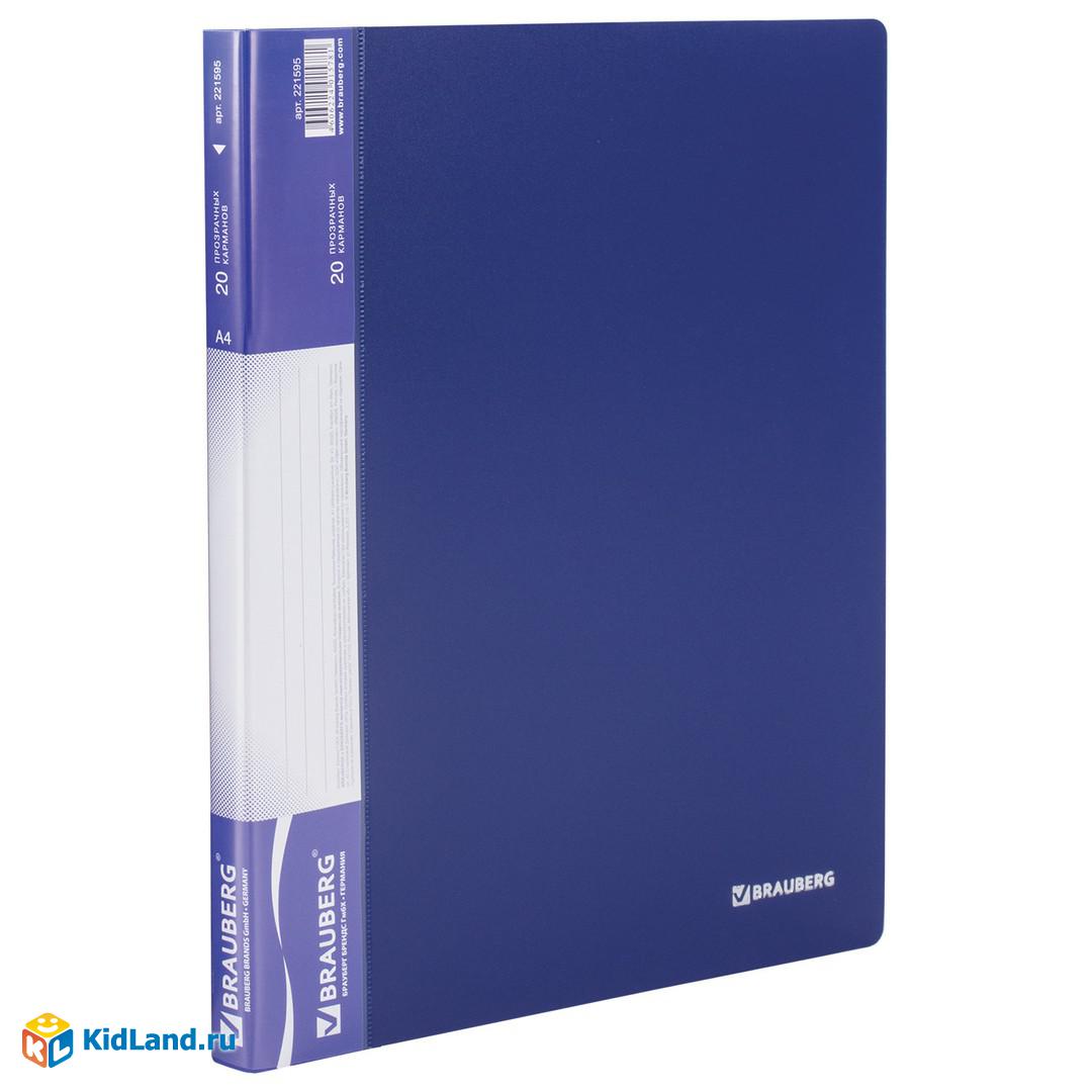 Папка 20 вкладышей BRAUBERG стандарт, синяя, 0,6 мм, 221595