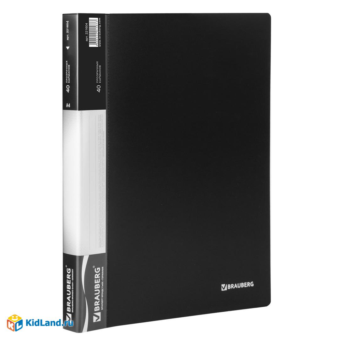 Папка 40 вкладышей BRAUBERG стандарт, черная, 0,7 мм, 221604