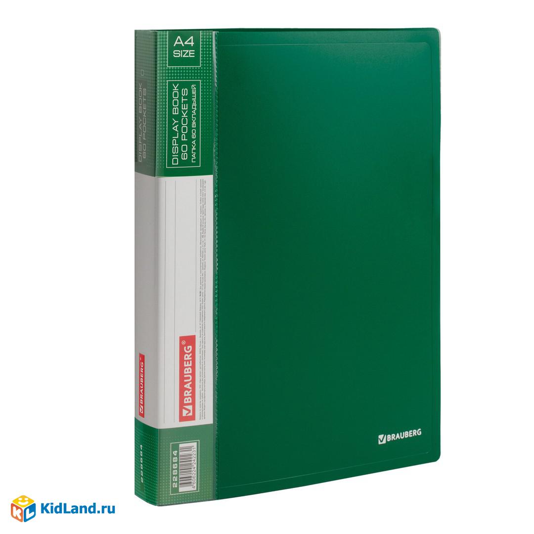 Папка 60 вкладышей BRAUBERG стандарт, зеленая, 0,8 мм, 228684