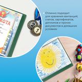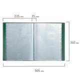 Изготовлена из качественного пластика толщиной 0,8 мм. Содержит 60 вкладышей формата А4. Также для идентификации содержимого имеется карман на корешке для сменной этикетки. Выполнена в современном привлекательном дизайне с антибликовой фактурой t;Стандартt; зеленого цвета.