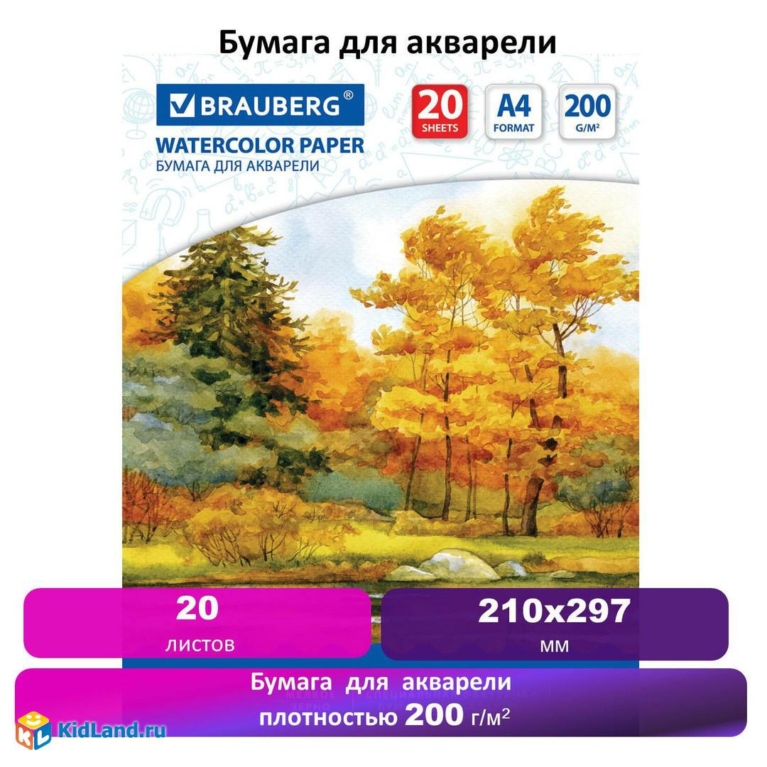 Папка для акварели А4, 20 л, 200 гм2, 210х297 мм, BRAUBERG, "Осенний лес", 125226