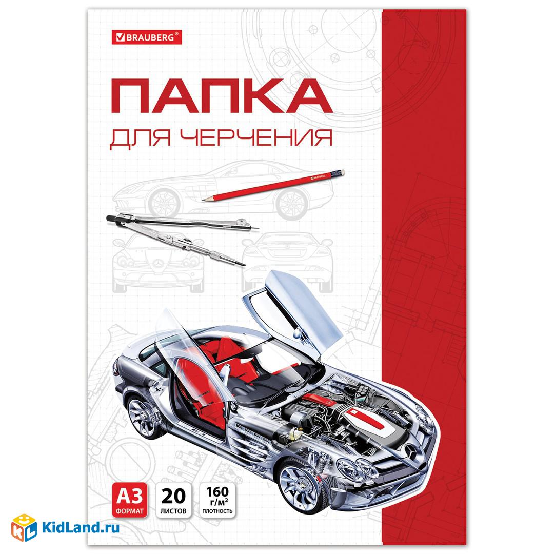 Папка для черчения БОЛЬШОГО ФОРМАТА (297х420мм) А3, 20л, 160 гм2, без рамки, BRAUBERG, 125234