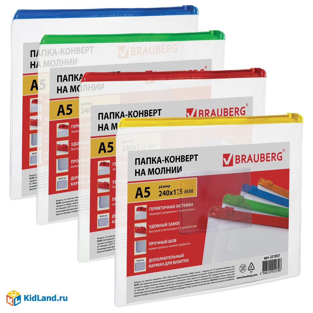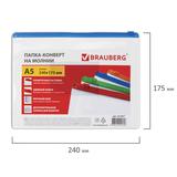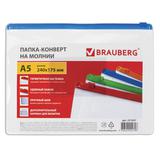 Папка-конверт на молнии МАЛОГО ФОРМАТА (240х175 мм), А5, молния ассорти, 0,15 мм, BRAUBERG "Smart",