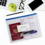 Изготовлена из прочного прозрачного пластика толщиной 0,15 мм с гладкой фактурой. Формат А5 (240х175 мм). Герметичная застежка-зиплок защищает документы от механических повреждений, а также пыли и влаги. Имеется карман для визитки. Цвет молнии - ассорти (поставляется без возможности выбора).