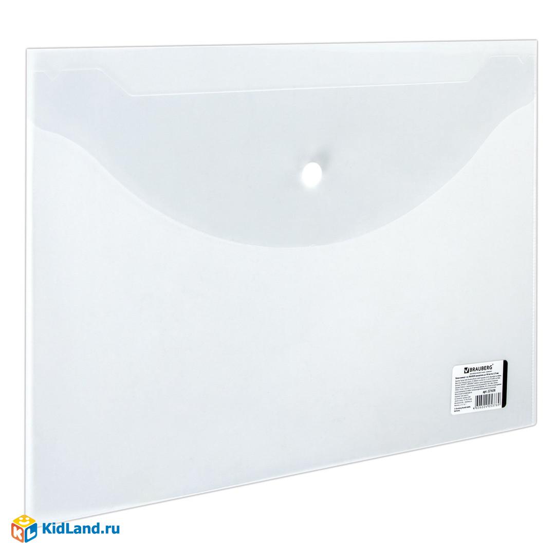 Папка-конверт с кнопкой BRAUBERG, А4, до 100 листов, прозрачная, 0,15 мм, 221638
