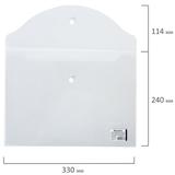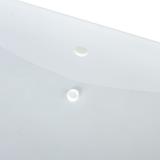 Папка-конверт с гладкой фактурой формата А4 изготовлена из плотного прозрачного пластика толщиной 150 мкм. Закрывается на защелку-кнопку, что делает удобным частое использование и обеспечивает быстрый доступ к ее содержимому. Папка способна вместить до 100 листов стандартной плотности.