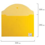 Папка-конверт с гладкой фактурой формата А4 изготовлена из плотного тонированного пластика толщиной 150 мкм. Закрывается на защелку-кнопку, что делает удобным частое использование и обеспечивает быстрый доступ к ее содержимому. Папка способна вместить до 100 листов стандартной плотности.