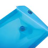 Папка-конверт с гладкой фактурой формата А6 изготовлена из плотного тонированного пластика синего цвета толщиной 180 мкм. Закрывается на защелку-кнопку, что делает удобным частое использование и обеспечивает быстрый доступ к ее содержимому. Папка способна вместить до 50 листов стандартной плотности.