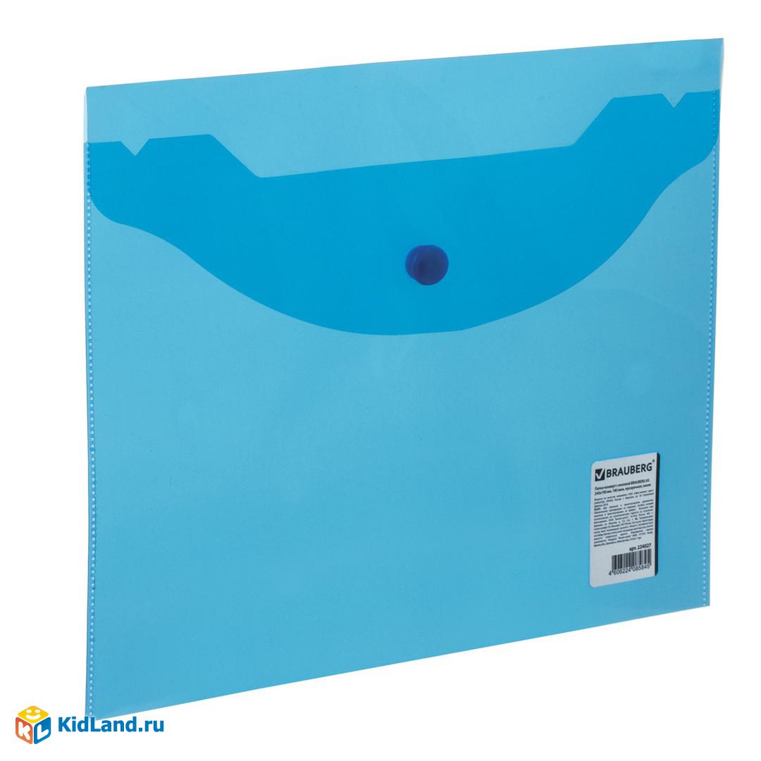 Папка-конверт с кнопкой МАЛОГО ФОРМАТА (240х190 мм), А5, прозрачная, синяя, 0,18 мм, BRAUBERG, 22402