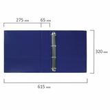 Папка стандартного формата А4 вмещает до 400 листов. Изготовлена из плотного картона с покрытием ПВХ толщиной 2 мм с гладкой фактурой. Допускается влажная обработка поверхности. Лицевая и внутренняя стороны обложки снабжены прозрачными карманами. Для идентификации имеется сменный бумажный корешок. Ширина корешка составляет 65 мм. Папка оснащена четырьмя кольцами, которые обеспечивают надежное хранение документов. В неё можно вставить файлы или проколотые дыроколом листы и, при необходимости, заменить их на другие. Каждая папка упакована в индивидуальный пакет.