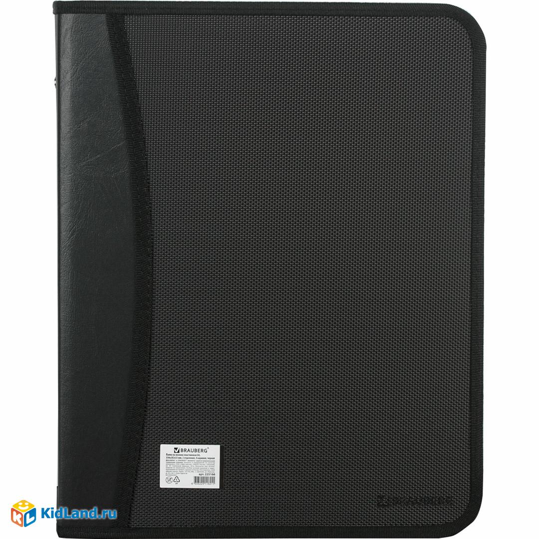 Папка на молнии пластиковая BRAUBERG, А4, 350х282х33 мм, 2 отделения, 4 кармана, бизнес-класс, черна