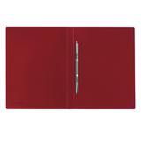 Изготовлена из высококачественного пластика красного цвета толщиной 0,6 мм с фактурой t;песокt;. Обеспечивает хранение до 100 листов формата А4. Металлический скоросшиватель с пружинным механизмом обеспечит надежную фиксацию документов. Для идентификации папки имеется бумажный корешок. Поставляется в индивидуальной упаковке.