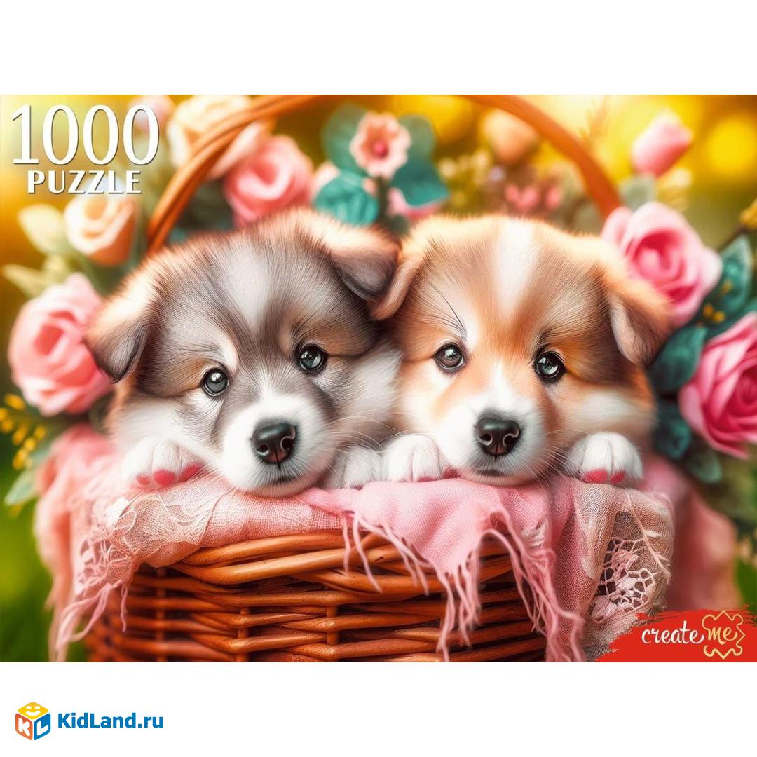 Пазлы 1000 Два щенка в корзине