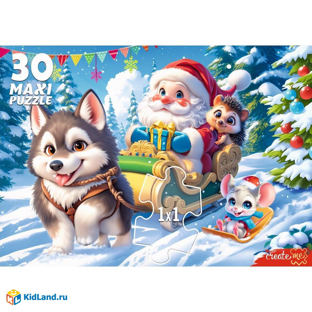 Пазлы MAXI 30 Хаски и Дед Мороз