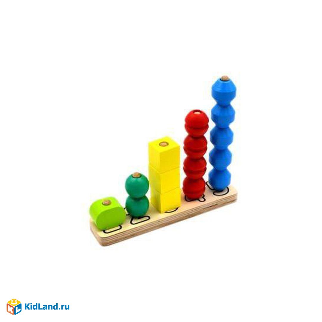 Пирамидка "Счеты", 15 деталей. Данная игрушка позволит малышу наглядно изучить состав числа. Также он изучает геометрические формы и цвета.