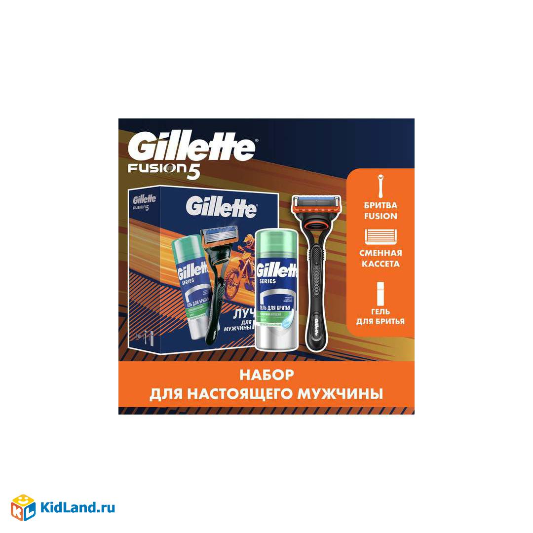 Подарочный набор GILLETTE Бритва Fusion + Гель д/бритья успокаивающий 75мл