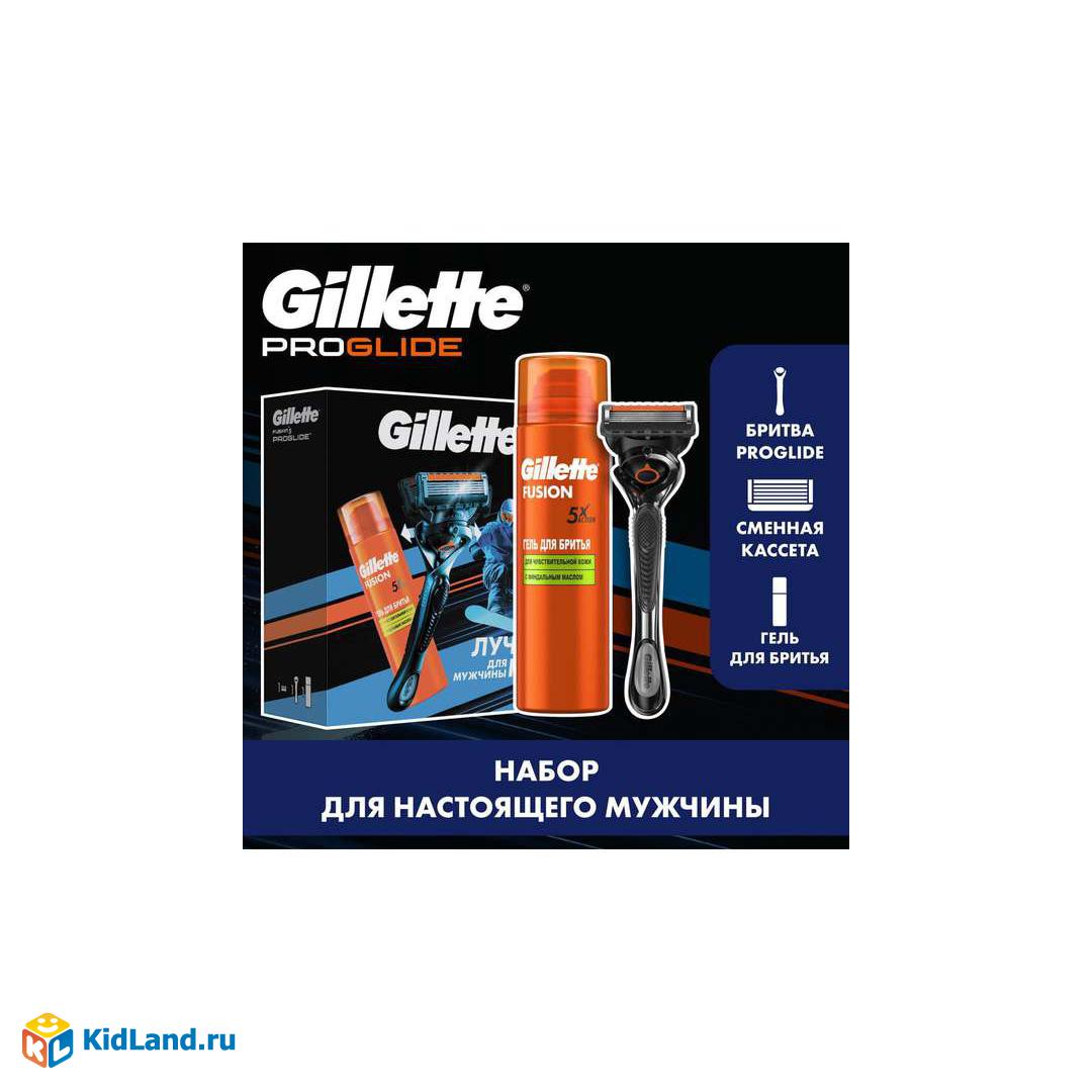 Подарочный набор GILLETTE Бритва Fusion5 ProGlide+1см.кас. + Гель д/бритья Fusion с миндальным маслом