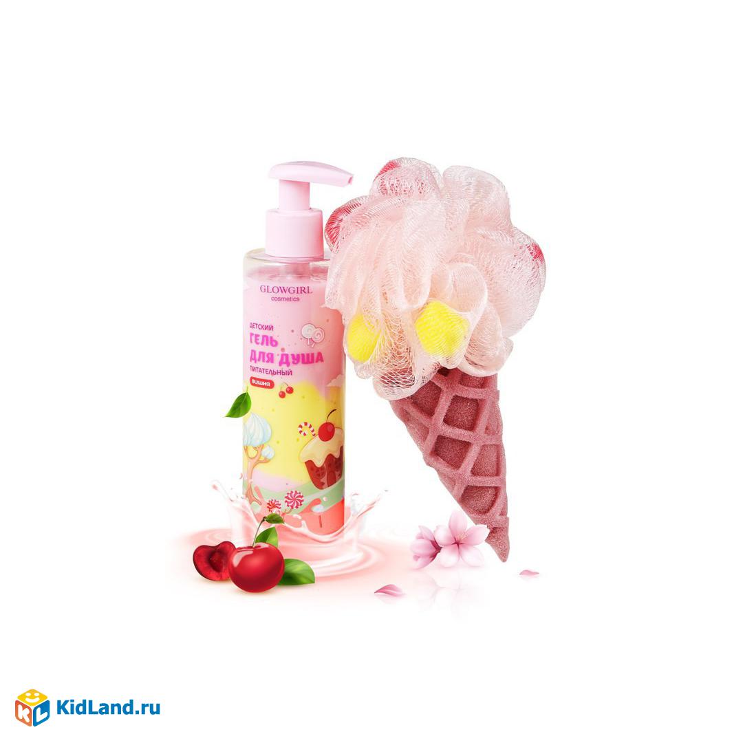 Подарочный набор косметики Glowgirl детский Гель для душа двухцветный Вишня ЭКО продук + Мочалка для тела «Мороженое»