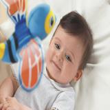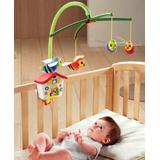 Пчелки медленно кружатся под приятную мелодию (игрушка заводная, работает без батареек). Мобиль предназначен для крепления на неподвижную стенку кроватки.