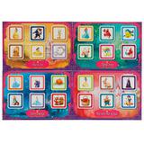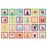 Набор состоит из цветных карточек с изображением принцесс и других сказочных персонажей. В комплект входят фишки с такими же картинками. Задача ребёнка - назвать, что изображено на фишке, и найти соответствующую этой фишке картинку на одной из карточек.