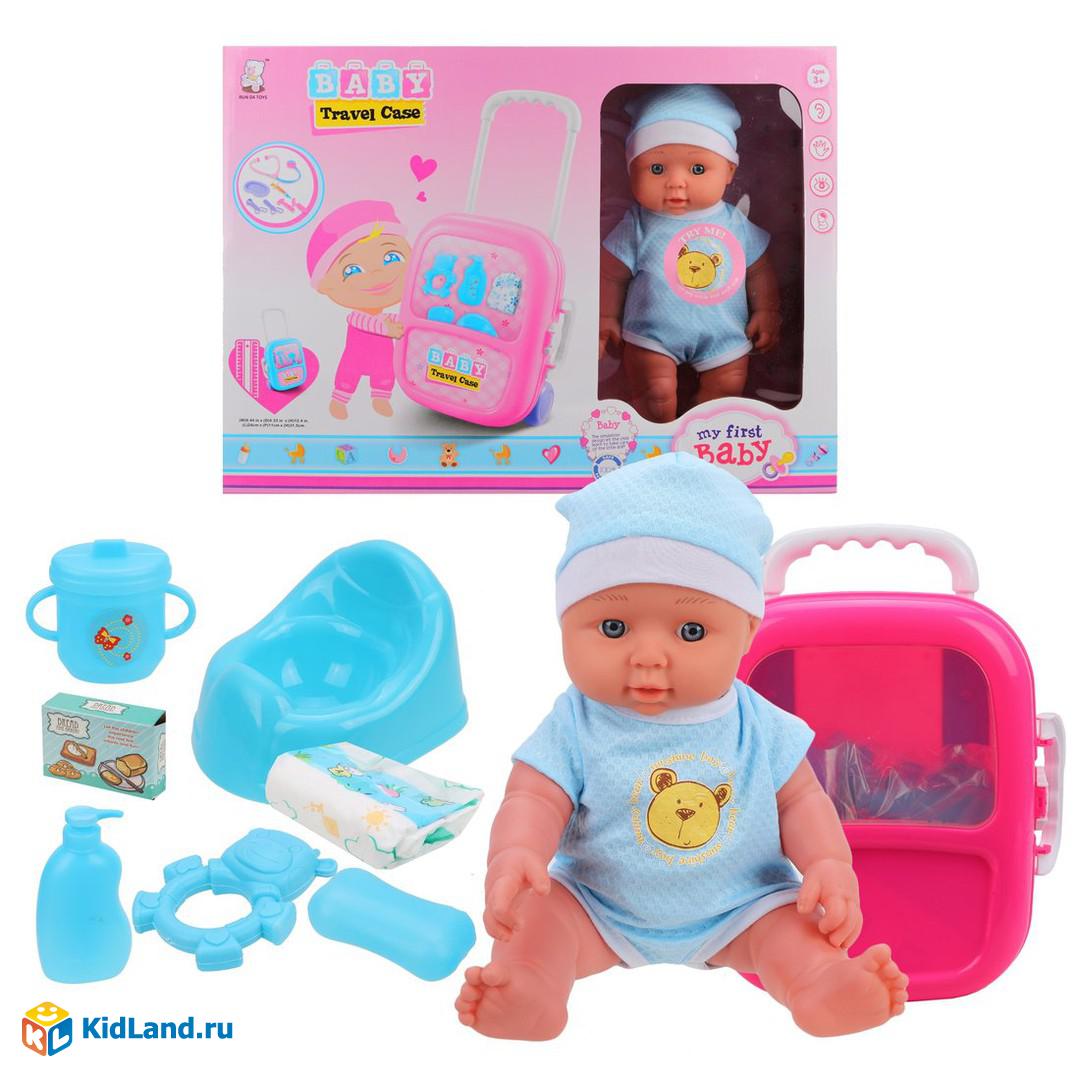 Пупс 30 см с чемоданчиком и аксесс. 7 предм.,, звук, кор.