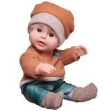 Пупс Junfa 34 см в светло-бежевой с орнаментом толстовке, шапочке, коричневых брюках