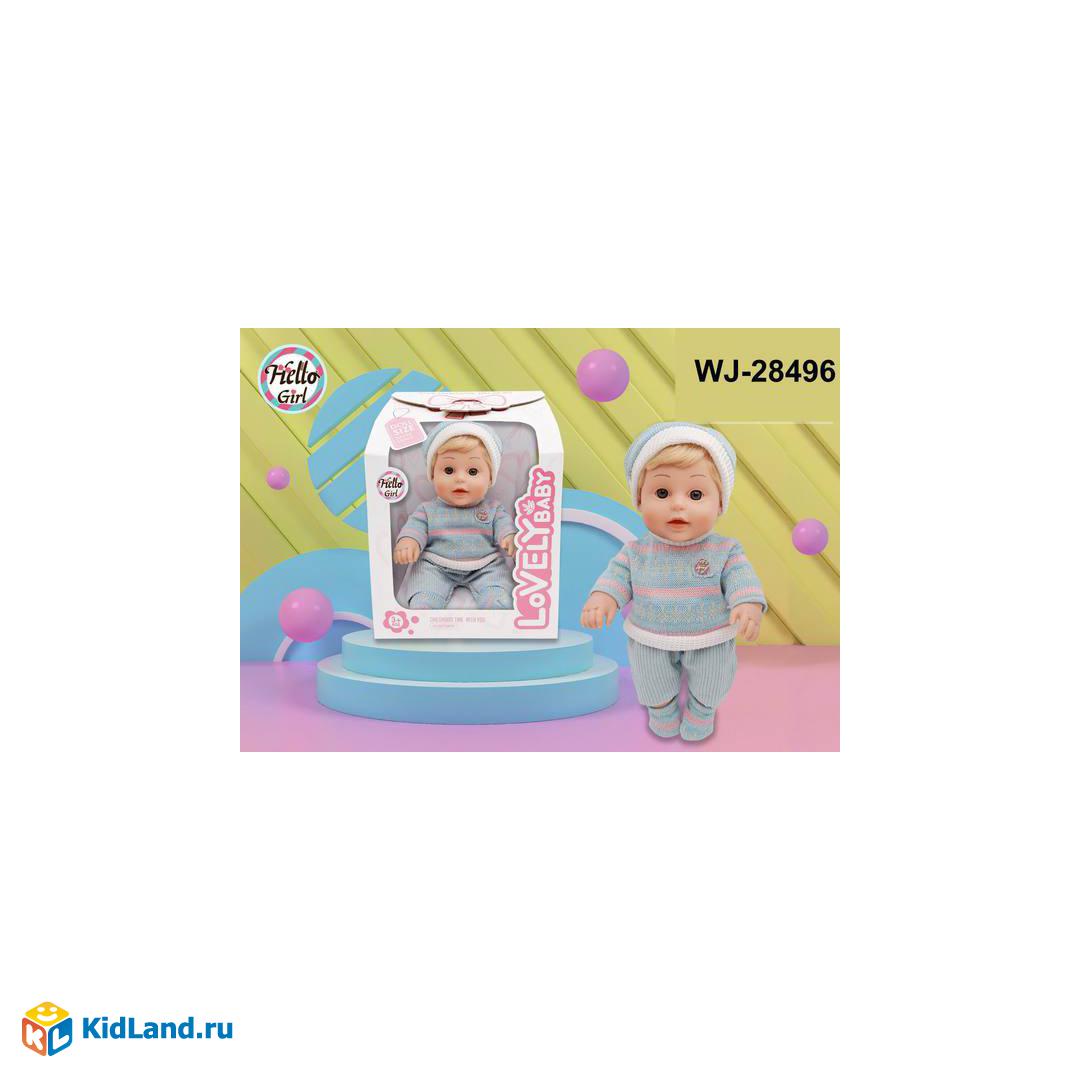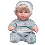 Пупс Junfa 34 см в коричневых толстовке и шапочке, бирюзовых клетчатых брюках