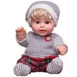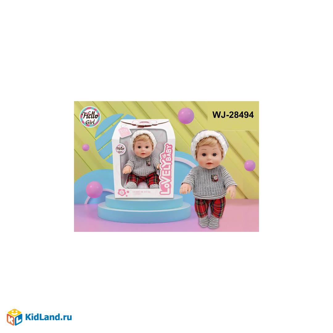 Пупс Junfa 34 см в серых свитере и шапочке, красно-черных брюках